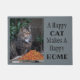 This cat lovers doormat says, "A Happy Cat Makes A Happy Home." The cat on the doormat is a beautiful and large feral/abandoned cat (probably part Maine Coon) that lives with a small colony of cats in the ivy of a grocery store in a busy town. He is sitting beside a tree stump that has a very large pile of cat food on it. This beautiful cat has such a grateful heart and comes running for food and water that kind-hearted people regularly leave for him and his buddies. Please consider visiting your local animal shelters when you decide to get a pet. A happy cat truly does make a happy home.