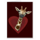 cute sweet giraffe peeping out of a dark red heart frame