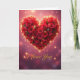 A mesmerizing heart-shaped arrangement of vibrant red roses adorned with delicate green leaves, glowing with sparkling golden lights. The romantic pinkish-red gradient background enhances the warmth of the image, with twinkling star-like accents adding a magical touch. Perfectly crafted to express deep affection, this card carries the heartfelt phrase "I love you," making it the ideal keepsake for Valentine's Day.
