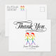 This thank you card features a beautiful and heartfelt design to show your appreciation for your wedding guests. The graphic depicts two women, in the form of elegant stick figures, holding hands. The figures are coloured in a beautiful rainbow, symbolizing love and diversity. This card is a wonderful way to express gratitude to everyone who helped you celebrate your special day.