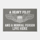 A cheeky way to welcome guests to your home, this aircraft grey doormat features a white pilot wings graphic and custom text that reads, A heavy pilot and a normal person live here. Use the "Customize It" button for even more personalization options!