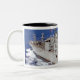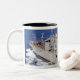 A helicopter clears the flight deck of the Military Sealift Command ammunition ship USNS Flint featured with aircraft.