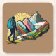 A hiker walking down a mountain path square paper coaster