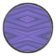 A hockey puck with a vibrant purple geometric