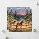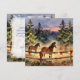 A sweet Christmas card with a watercolor illustration of a horse ranch decorated all festively. A sweet winter night in the country old[fashioned farm house Christmas farm.