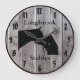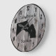 Personalize this custom barnwood styled clock with your farm, ranch, or stable name to add a personal touch to the decor. Barnwood look clock face with horse and owner showing affection silhouette in centre. Choose one of two sizes and two colours of clock hand, whichever is to your liking.
