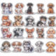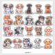 Illustration représentant vingt types différents de chiots mignons. Généré par Dalle3.