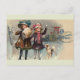 Designed by Susan Epps Oliver. Vintage Christmas image of two little girls playing snowballs with their dog. The card's message is "A Joyful Christmas".