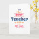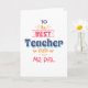 Carte de jour des enseignants mignonne et colorée avec un nom modifiable pour l'enseignant, qui est sûr d'égayer chaque jour de professeur! A l'intérieur, laissée volontairement vide pour vous permettre de fournir une touche personnelle avec un message manuscrit et un message d'accueil.