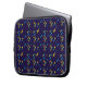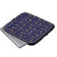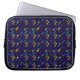 A laptop sleeve with a vibrant geometric pattern. It features colorful abstract shapes on a dark blue background, creating a dynamic and modern look.