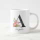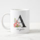 A Letter Black Monogram Floral Red Purple Greenery Large Coffee Mug
