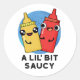 A Lil Bit Saucy Funny Sauce Pun features a cute pair of mustard and ketchup sauce bottles. Perfect pun gift for family and friends who love cute sauce puns.