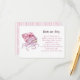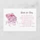 This beautiful baby shower enclosure card for books features pink watercolor ballet shoes resting on top of a book on the front, with soft pink watercolor stripes on the back. This charming card is part of the Ballet Shoes and Roses baby shower suite.