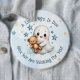 Celebrate your upcoming little one with these adorable custom pins featuring the phrase 'A Little Boo Is Due.' Perfect for a Halloween or fall-themed baby shower, these pins showcase a cute ghost cuddling a teddy bear surrounded by twinkling stars. Personalize them with the baby's name or a special message to create a unique and memorable party favour that guests will cherish. These pins add a sweet and festive touch to your baby shower, making them the perfect accessory for your celebration.