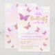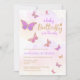 A baby butterfly is on the way butterfly Baby Shower Invitation with beautiful pink purple gold glitter butterflies and script calligraphy type.