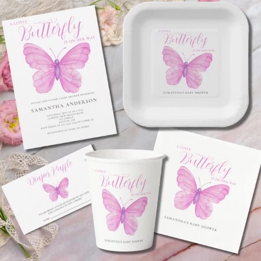 A little butterfly pink baby shower napkins. Easy to change the text. Pretty watercolor pink butterfly for baby girl.