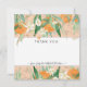 "A Little Cutie Oranges Eucalyptus Baby Thank You Note Flat Card." Soft peach apricot background colour can be changed and is blended with watercolor artwork of Cutie oranges, flower blossoms, baby fruit, citrus and eucalyptus leaf greenery for Reverse side has typography text, "a little cutie is on the way." Artwork by internationally licensed artist and designer, Audrey Jeanne Roberts, copyright.