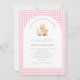 A Little Duckling Is on the Way Duck Baby Shower Invitation - featuring a little baby duck sitting on greenery and flowers. Invitation is surrounded in adorable blush pink gingham with modern typography for a minimalist feel. Invitation is part of a Baby Shower Collection.