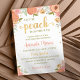 Our peach baby shower invitation is the perfect way to invite friends and family to your party. The design features a fruit theme, with plenty of space for all the important details such as the date, time, and location of the party. Perfect for any age, gender and theme of the party, it is sure to impress your guests and get them excited for the celebration.