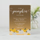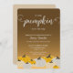 These little pumpkin invitations are perfect for anyone celebrating a baby shower this year. The design features pumpkins on a gradient brown background with easy to personalize template wording.