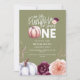 Floral and pumpkin fall 1st birthday party invitation in purple, green and peach. With beautiful watercolor floral, foliage and pumpkin design. Ideal fall/autumn design. Ideal for fall birthdays.