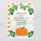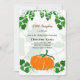 Halloween Pumpkin themed baby shower invitation featuring a warm orange and green watercolor painted pumpkin design.