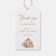 Celebrate the mom-to-be with this vintage inspired dusty rose autumn baby shower thank you favour tag featuring an illustration of a cute teddy bear sitting next to a pumpkin with a floral bouquet.