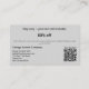 On the back find the company's appreciation for customer support, a percentage discount with terms below including a specified expiration date. The bottom half features a custom QR code with contact information. The card is an excellent marketing tool to show your gratitude and build customer loyalty to your brand. For more inspiration on seasonal branding and offline business marketing, visit www.KBMD3signs.com. If you need help with personalization, contact us at info@KBMD3signs.com.