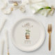 Our farmers market locally grown baby shower paper plates include a sweet baby in a plant pot wearing a leafy hat.