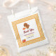 This beautiful and cute Thank You Favour Bag design features fall Thanksgiving baby shower " A Little Turkey Is On The Way" themes with a cute little turkey and fall season pumpkins and yellow orange white gingham pattern in warm autumn colours. You can easily customise with your own text, fonts and colours and make it your own.