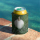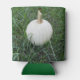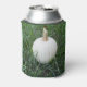 A Can Cooler, with a picture of a beautiful, Little White Pumpkin, sitting in the grass on the front of it , and reversed on the back of it = (Picture by P.J.M.) a dark green bottom.