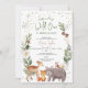 A rustic Woodland Forest Baby Animals Birthday invitation to celebrate the milestone of your little one!