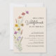 This charming boho baby shower invitation is decorated with watercolor wildflowers in natural shades on a soft cream background. It says "Our little wildflower is on the way" in stylish script typography. Perfect for a boy's, girl's, or gender-neutral baby shower.