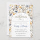 A little wildflower girl baby shower invitation, blue and yellow meadow watercolor flowers