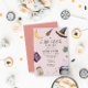 Have a fun halloween baby shower with our adorable invitation. The design features watercolor illustrations of a variety of cute little witch elements, along with a hand-written typography to complement the look with a header that reads "A little witch is brewing". All text is 100% customizable.