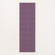 A long, rectangular navy blue yoga mat features a repeating pattern of small, pink flowers, creating a cheerful and uplifting design.