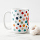 A fun mug with bright polka dots and a single heart packs a punch and is thought provoking also. Enjoy