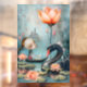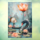 A whimsical scene depicts a serene young girl in a small boat surrounded by blooming water lilies and a graceful black swan. In the background, ethereal flowers and a distant castle add a dreamy, mystical atmosphere. Digital Art Photoshop CS5