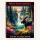 A stunning moose stands gracefully by a tranquil lake, surrounded by colourful trees and a majestic waterfall cascading nearby. The vibrant hues create a serene atmosphere at dusk.