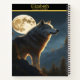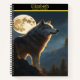 A majestic wolf howling under a full moon at night notebook