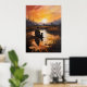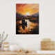 Capturing a timeless bond between man and his loyal companion, this exquisite oil painting brings to life a serene moment by the lakeside. As the sun gracefully dips below the horizon, the man and his faithful dog sit side by side, sharing a quiet connection that words can't express. The tranquil waters mirror the vivid hues of the sunset, casting a warm and gentle glow on their companionship.