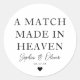 A MATCH MADE IN HEAVEN Heart Wedding Matches Favou Classic Round Sticker
