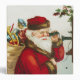 Vintage illustration Victorian Christmas holiday design featuring an old world Santa Claus on an old fashioned string telephone with a young girl.
