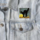 Vintage Halloween illustration showing a black cat on a fence with a moon-face behind.