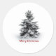 Round sticker with an image of a solitary snow-covered pine tree and “Merry Christmas” printed beneath it in red. See matching confetti, favour tag, gift bags, label and wrapping paper. See the entire Holiday Sticker collection in the INVITES | Stickers & Labels section.