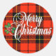 Merry Christmas Greeting in white fancy script typeface on a striking red and black plaid. Simple and elegant. Customizable Cards