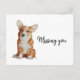A warm message of Missing you by a cute little puppy Welsh Corgi looking with those loving eyes.