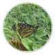 A Circular, Ceramic Pull, ( Ceramic Knob), With a Picture of a Beautiful Monarch Butterfly, laying in the grass on it.