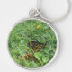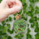 A Premium Round (Large), Keychain ,with a Picture of a Monarch Butterfly ,in the grass on it.