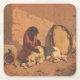 A Monkey And A Dog With A Large Tambourine Square Paper Coaster